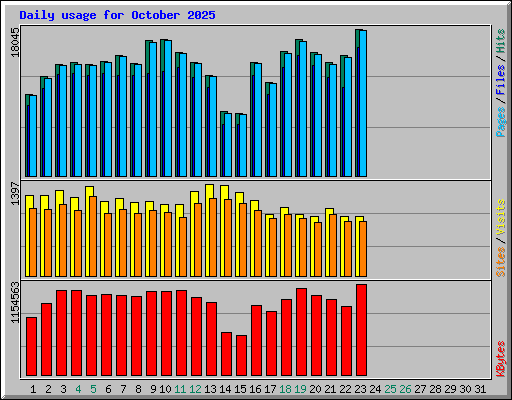 | Day | Hits | Files | Pages | Visits | Sites | KBytes | ||||||